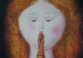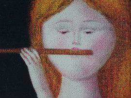 Suonatrici di flauto, litografia a colori, cm 58x68,5, entro cornice.