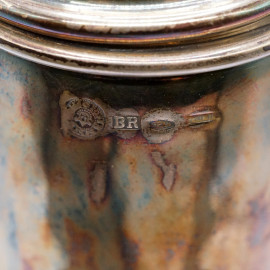 Caffettiera con coperchio in argento sterling Brandimarte 925, XX secolo, corpo liscio con decoro floreale inciso, presa a orecchio, cm h 20,5, peso gr.500