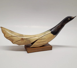 Design italiano anni '30, scultura in corno raffigurante uccello appollaiato, cm 30