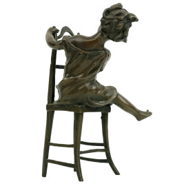 Fanciulla sulla seggiola, scultura in bronzo, cm h 21,5, prima metà del XX secolo.