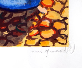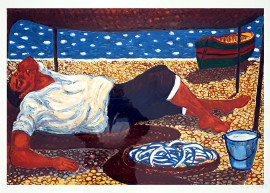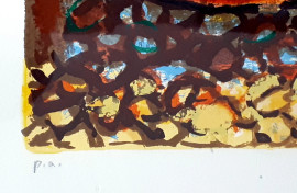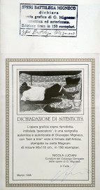 Giuseppe migneco (1908-1997), Il riposo del Pescatore, grafica di grande formato stampata su carta Magnani, esemplare P.A., cm 90x110, al retro autentica del Prof. Speri Battilega Migneco, firmata e numerat, eccellenti condizioni di conservazione, con cor