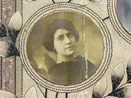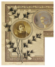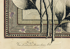 Lotto composto da coppia di dagherrotipie ai vapori di mercurio raffiguranti uomo e donna montati su pannello in carta decorata a motivi vegetali, Napoli, metà '800, e di seguace di Francois Antoine Claudet (1797-1867) grande foto alla gelatina ai Sali d'