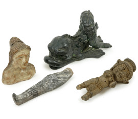 Lotto composto da quattro sculture in terracotta, manifatture diverse, alt. max cm 13, (difetti)