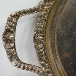Lotto composto da un vassoio, una legumiera ed un versatoio in Sheffield, misure max cm 68x44, XX secolo, (segni del tempo)