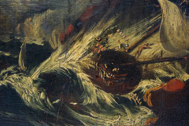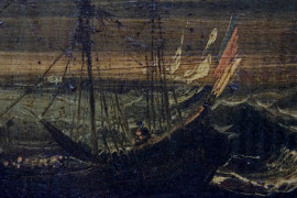 Marina in tempesta, olio su tavola ad assetto ottagonale, cm 25x31, XIX secolo, in cornice
