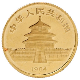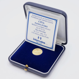 Moneta cinese in oro, 1984 diam. cm 1,2, peso gr.3,1, entro custodia.