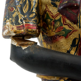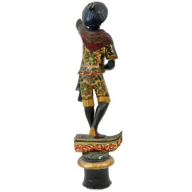 Moretto gondoliere, Venezia, fine XIX secolo, scultura in legno ebanizzato e laccato, dipinto in policromia, cm h 77, (difetti, mancante remo e mano)