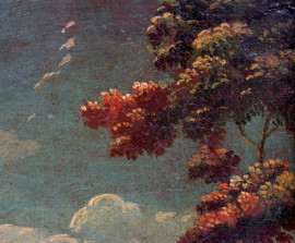 Paesaggio con torre, olio su tela, cm 19.5x25.5, XVIII secolo, in cornice