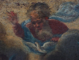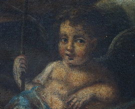 Pittore del XVII secolo, La morte di Giuseppe, olio su tela, cm 90,5x66,5, entro cornice, (difetti, cadute di colore, restauri)