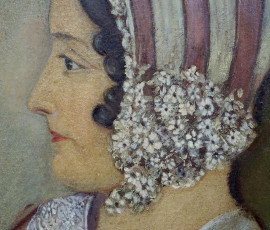Ritratto di donna, olio su carta applicata su cartone, cm 38,5x31,5, fine XIX secolo, in cornice