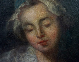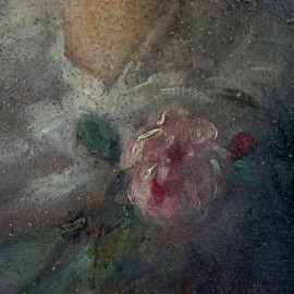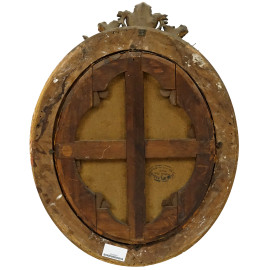 Ritratto di fanciulla, olio su carta applicata su tela ad assetto ovale, cm h 46x38, fine XIX secolo, in cornice, (difetti)