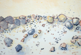 Rocce, acquarello su carta, cm 18x28, XX secolo, entro cornice.