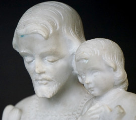 San Giuseppe con Bambino, scultura in marmo bianco, cm h 61, (difetti)