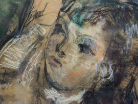 Studio di figura femminile, tecnica mista su carta, cm 80x100, firmato A. Mancini, entro cornice.
