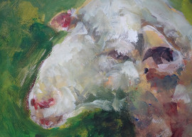 Studio di pecora, olio su cartone, cm 20x25, firmato Michetti, entro cornice.