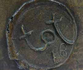 Donna ciottolo come Narciso, scultura in bronzo, cm h 40