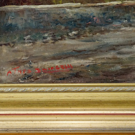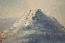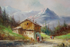 Paesaggio montano, olio su tela, cm 50,5x70, entro cornice