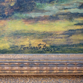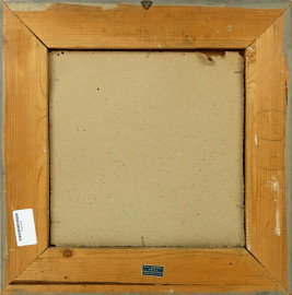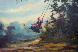 L'altalena, olio su masonite, cm 29x29, firmato, entro cornice.