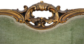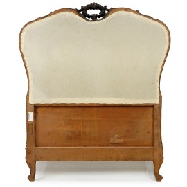 Letto con testata di linea sagomata in legno intagliato e dorato stile Luigi XVI