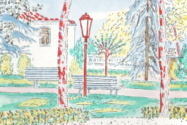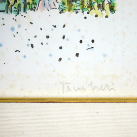 Parco parigino, incisione colorata a mano, cm 27,5x37,5, 1983, entro cornice, (macchie)