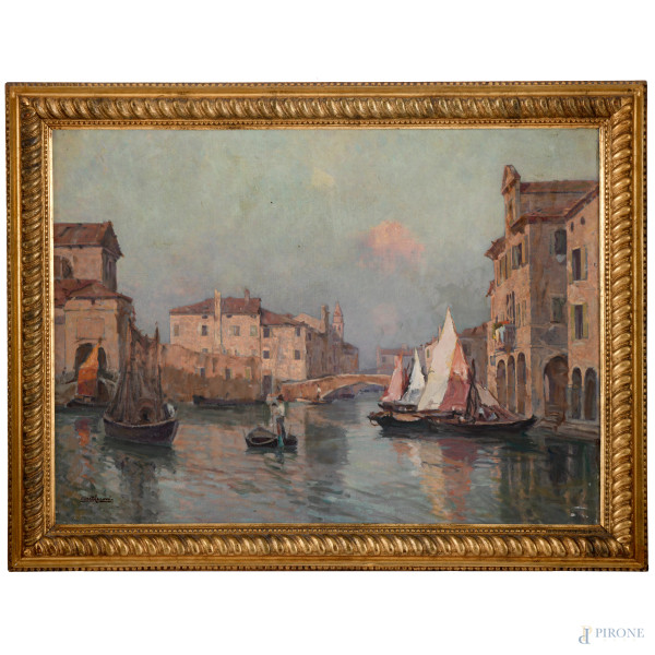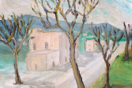 Viale alberato, olio su tavola, cm 25x35,5, XX secolo, entro cornice