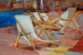 Spiaggia, olio su tela, cm 60x80, entro cornice