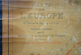Carte de l'Europe à l'echelle de 1:4000.000. Dressée et publiée par le Service Geographique de l'Armé, 31 Decembre 1920, cm 129x160 circa, (difetti e macchie)