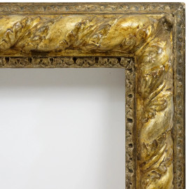 Cornice del XVII secolo in legno intagliato e dorato a mecca, ingombro cm 67x87, battuta cm 50,5x70,5 , (difetti e restauri)