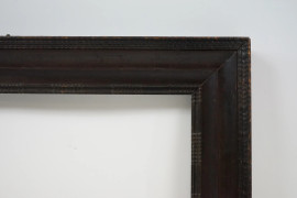 Cornice fiamminga del XVIII secolo in legno intagliato, lavorata a guillochè, misure ingombro cm 47x74, battuta cm 32x59, (difetti)