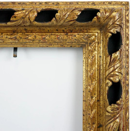 Cornice in legno dorato ed intagliato, XX secolo, cm 92x127, luce cm 71,5x106, (difetti)