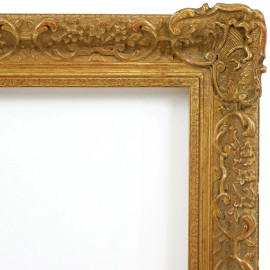 Cornice in legno e stucco dorato, inizi XX secolo, fascia con fitto decoro naturalistico a rilievo di gusto rocaille, misure ingombro cm 91x78, luce cm 77x64