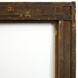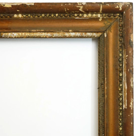 Cornice in legno e stucco dorato, XIX secolo, profilo interno a palmetta, seguito da gola liscia e decoro a perline, misure ingombro cm 141x191,5, misure battuta cm 124,5x175, (difetti)