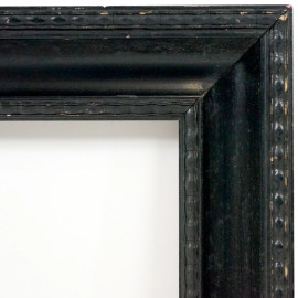 Cornice in legno ebanizzato, intagliato ed inciso, XX secolo, misure ingombro cm 47x39, misure battuta cm 38x30, (difetti)