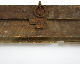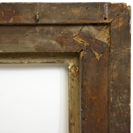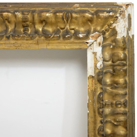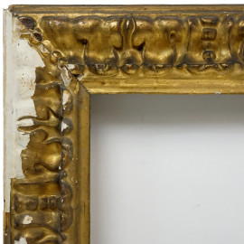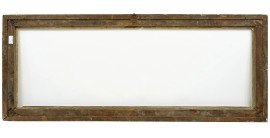 Cornice in legno intagliato e dorato del XVIII-XIX secolo, decoro ad ampie foglie aperte verso l'interno misure ingombro cm 186x76, luce cm 169x59,5, (difetti)
