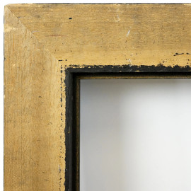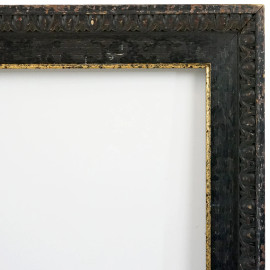 Cornice in legno intagliato ed ebanizzato, XX secolo, profilo interno dorato, battuta esterna a ovoli, misure ingombro cm 112x91, battuta cm 97,5x77, (difetti)