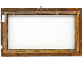 Cornice modanata in legno dorato, ingombro cm 44x71, battuta cm 32,5x61, (difetti)