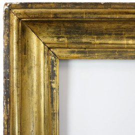 Cornice modanata in legno intagliato e dorato, XIX secolo, misure ingombro cm 170x97, misure battuta cm 148x74, (difetti)