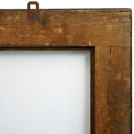 Cornice modanata in legno tinto a noce, XX secolo, misure ingombro cm 139x115, misure battente cm 119x95, (difetti).