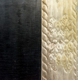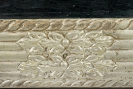 Cornice porta fotografia in metallo argentato, decori incisi e sbalzati, cm 31x37,5, (difetti)