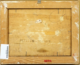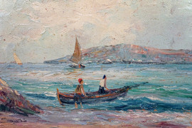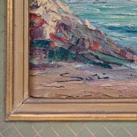 Costa napoletana, olio su compensato, cm 18,5x24, firmato, entro cornice.