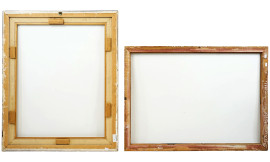 Due cornici rettangolari in legno laccato e dorato, XX secolo, misure ingombro massimo cm 110x79, (difetti)