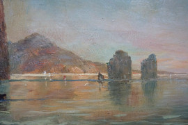 I Faraglioni di Capri visti da Marina Piccola, olio su tavola, cm 25x20, firmato, entro cornice.