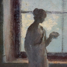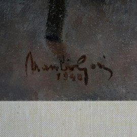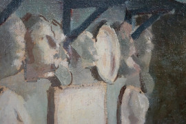 L'atelier dell'artista, olio su tela, cm 55,5x45, firmato, entro cornice