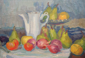 Natura morta - Frutta ed ortaggi, olio su tela, cm 45x55, firmato, entro cornice