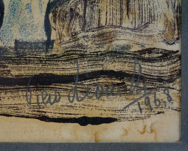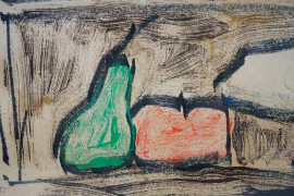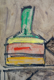 Natura morta- vasellame, tecnica mista su carta, cm 32x21, firmato e datato, entro cornice