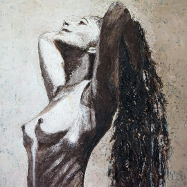 Nudo femminile, olio su tela, cm 70x50, firmato G.Ricciardi, entro cornice