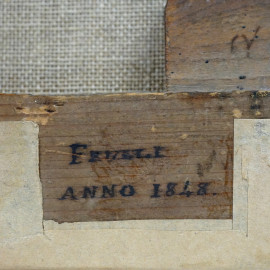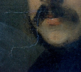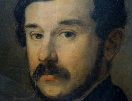 Pittore XIX secolo, Ritratto di gentiluomo con baffi, olio su tela, datato a tergo 1848, cm 42,5x32, (restauro)