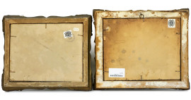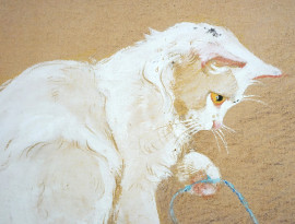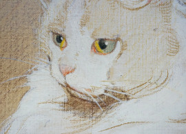 Gatti, coppia di dipinti a tecnica mista su carta, cm 22x26,5, entro cornice.