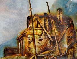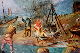 Ritorno dalla pesca, olio su carta ad assetto ovale, cm 15x18, XX secolo, entro cornice.