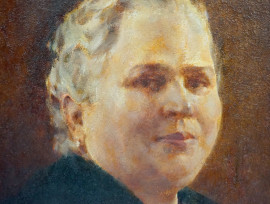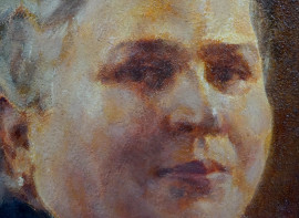 Ritratto di anziana, olio su compensato, cm 50x40, firmato, entro cornice.